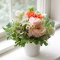 - ・花材・花器共に季節商品のため変更になる場合がございますが、できるだけ雰囲気を損なわないよう作成いたしますのでご了承ください。