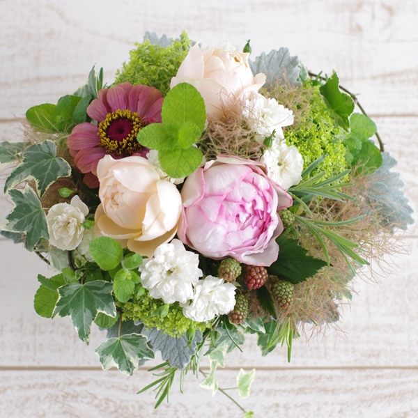 - ・花材・花器共に季節商品のため変更になる場合がございますが、できるだけ雰囲気を損なわないよう作成いたしますのでご了承ください。
