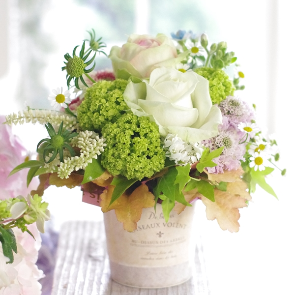- ・花材・花器共に季節商品のため変更になる場合がございますが、できるだけ雰囲気を損なわないよう作成いたしますのでご了承ください。