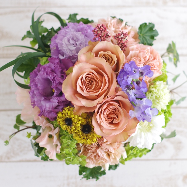 - ・花材・花器共に季節商品のため変更になる場合がございますが、できるだけ雰囲気を損なわないよう作成いたしますのでご了承ください。