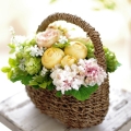 | 説明 | かわいいイエロー系のお花をナチュラルなバスケットに盛り合わせた、愛らしいアレンジメントです。 |